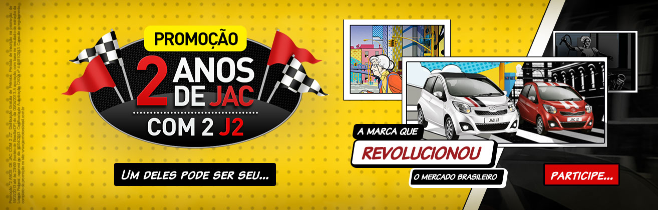 No dia 18 de março de 2011, exatamente dois anos atrás, batizado como Dia J, a JAC Motors inaugurava oficialmente suas atividades no mercado brasileiro. Representada pelo Grupo SHC, a marca iniciou suas vendas com a abertura simultânea de 50 concessionárias em todo o País. Para celebrar esse segundo aniversário, a área de Marketing da marca, em parceria com a agência Ogilvy, criou a campanha on-line “2 Anos de JAC com 2 J2”. Através de banners espalhados pelas homepages dos principais sites do país, a promoção vai dar visibilidade ao aniversário da marca e realçar a presença do modelo compacto no mercado, lançado há poucos meses.