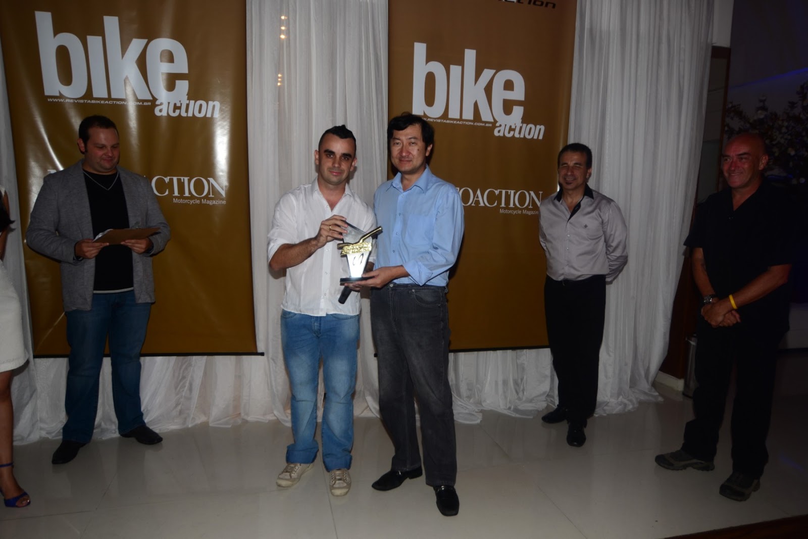 Realizado em São Paulo na noite da terça-feira (26), o Prêmio Guidão de Ouro premiou as melhores motos do ano em sete categorias, além do melhor piloto, segundo a visão dos internautas. Na seleção dos pilotos, entre os dez melhores da temporada, destaque para Alan Douglas, que este ano disputará pela terceira vez o Moto 1000 GP válido pelo Campeonato Brasileiro. O piloto da equipe Pitico Race, campeão da temporada 2011 e que no ano passado ficou com o vice-campeonato, levou o troféu pela segunda vez consecutiva no evento que chegou à sua nona edição, e é uma realização da revista MotoAction.