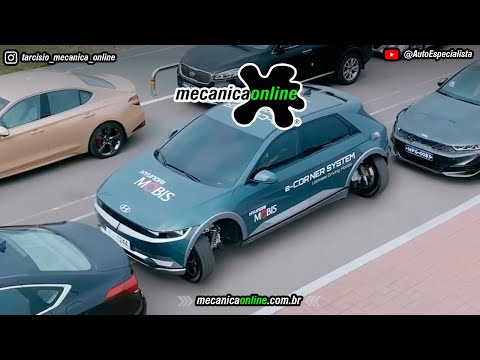 O sistema “Crab Drive” possibilita movimentos perfeitos na lateral. A tecnologia “In-Wheel” da Mobis integra frenagem, direção, suspensão e motor elétrico em cada roda.