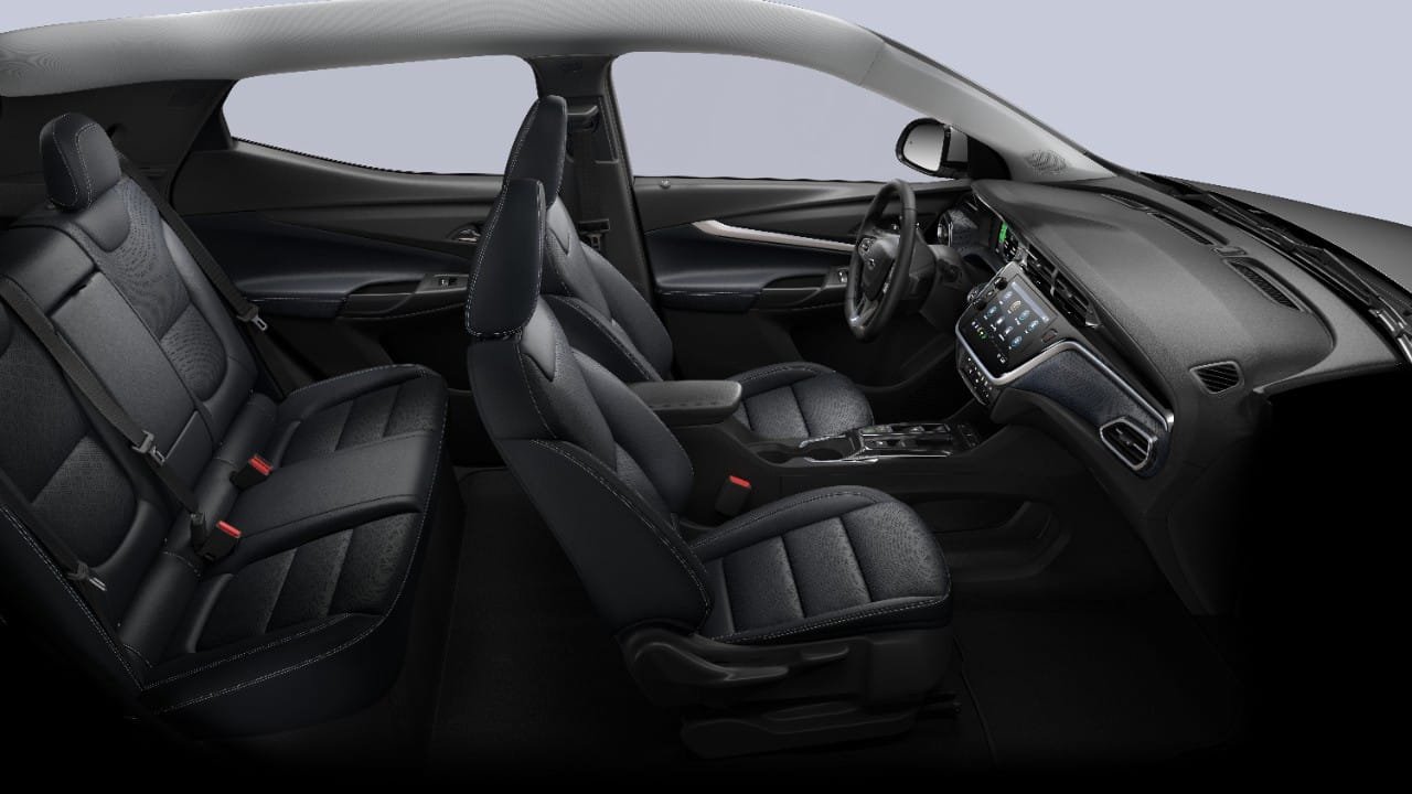 O Chevrolet Bolt EUV Premier conta com acabamento premium e uma ampla lista de equipamentos de segurança e comodidade, entres eles 10 airbags, alerta de colisão com frenagem automática de emergência, controle de cruzeiro adaptativo, câmeras 360 graus para manobras, volante e bancos com aquecimento, sistema de áudio da marca BOSE e teto solar panorâmico.