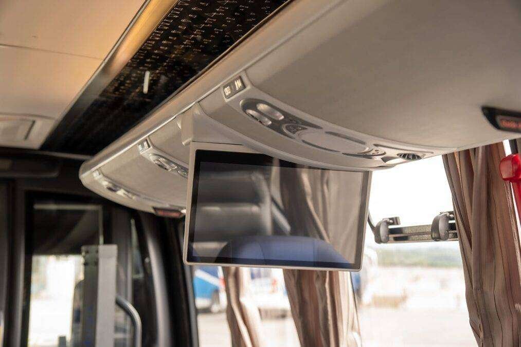 O modelo ainda inclui itens como farol de neblina, geladeira de 41 litros, tomadas USB nas poltronas, sensor de estacionamento, microfone sem fio, internet Wi-Fi e câmera de marcha ré. O acabamento interno contempla revestimento das poltronas em couroflex, iluminação noturna azul e dispositivos de acessibilidade.