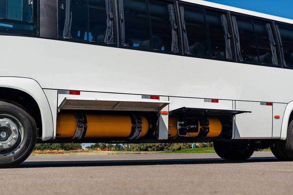 O veículo tem três cilindros com capacidade para 360 litros de combustível, garantindo autonomia de até 450 quilômetros, dependendo do uso. Conta ainda com sistemas eletrônicos de controle de tração e estabilidade, além de bloqueio de funcionamento com portas abertas, visando segurança e conforto.