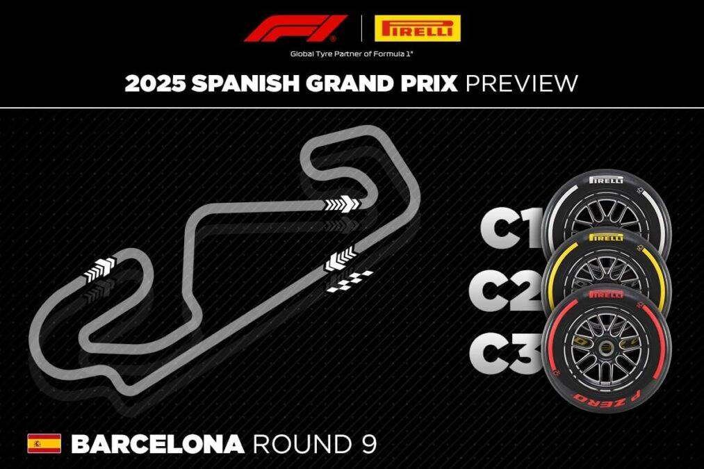 Os compostos utilizados no GP da Espanha serão os mais duros da gama de 2025: C1 como Duro, C2 como Médio e C3 como Macio. Modificações no C2 podem aumentar sua relevância na escolha dos pilotos. O circuito impõe forças médias a altas sobre os pneus, sendo o dianteiro esquerdo o mais exigido.