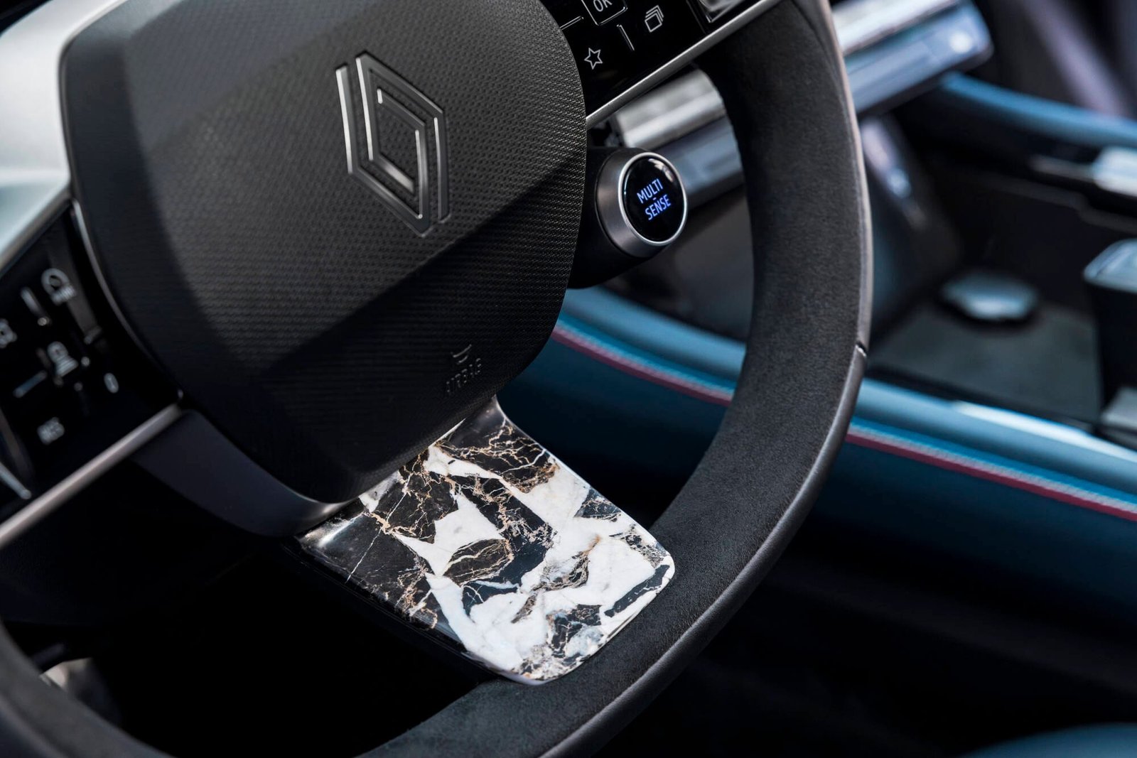 A central traseira, construída pela empresa Design & Solution, reúne funcionalidades como conectividade, ergonomia e acabamento em Alcantara. A Renault descreve o modelo como uma “voiture à vivre”, termo que define veículos capazes de combinar deslocamento e funcionalidade em tempo real.