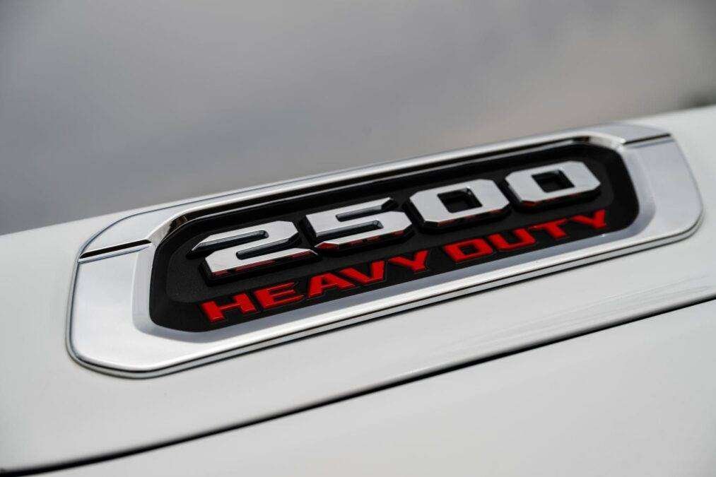 Externamente, a Ram 2500 Laramie recebeu nova grade dianteira, faróis full LED com sistema de facho alto automático e rodas de liga leve de 18 polegadas. Os estribos laterais cromados são fixos, e a tampa da caçamba possui abertura elétrica com acionamento remoto. A caçamba é revestida com material de alta resistência e iluminação por LEDs, e inclui o sistema Rambox® com compartimentos laterais à prova d’água e tomada de 115V.