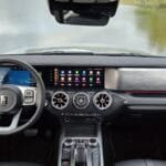 O interior apresenta layout funcional e de fácil adaptação. As duas telas de 12,3 polegadas exibem informações do painel e do sistema multimídia, com interface em português e conexão sem fio para Apple CarPlay e Android Auto. A integração com o aplicativo My GWM permite monitoramento remoto de funções como travamento, climatização e nível de carga da bateria. O sistema de áudio de 640 W oferece clareza nas transmissões, e os bancos dianteiros possuem aquecimento, ventilação e massagem. São itens que reforçam o caráter tecnológico do modelo, sem comprometer a usabilidade.