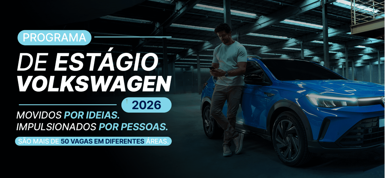 A Volkswagen do Brasil iniciou as inscrições para o Programa de Estágio Volkswagen 2026, com mais de 50 vagas destinadas a estudantes de graduação em diversas áreas. A ação ocorre até o dia 14 de novembro de 2025, nas unidades da empresa em São Bernardo do Campo, Taubaté, São Carlos e São José dos Pinhais. Os selecionados iniciarão suas atividades em março de 2026, com jornada de seis horas diárias, das 8h às 15h, em modelo híbrido ou presencial, conforme a área e a localidade.