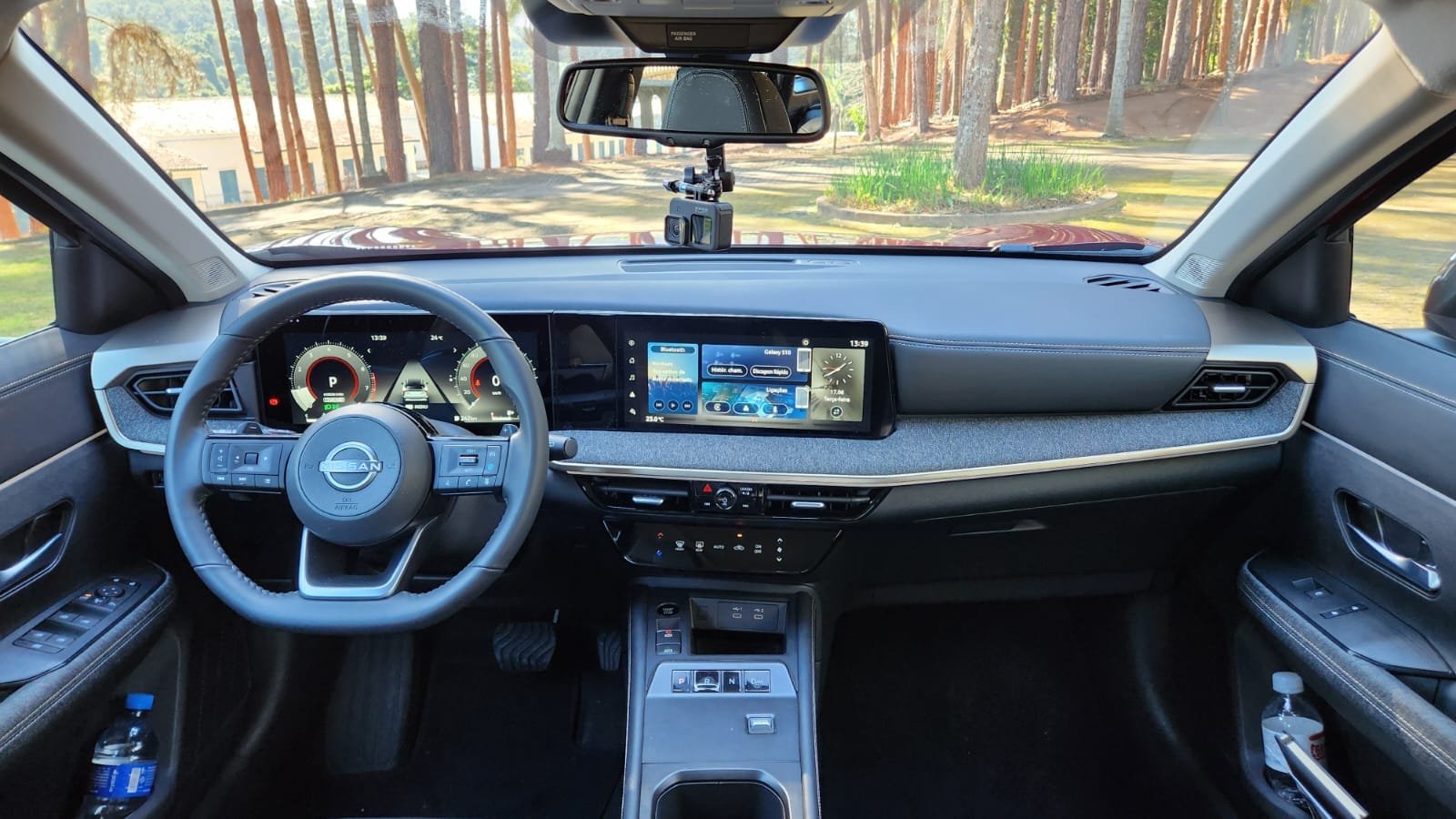 O Kicks 2026 também foi redesenhado internamente. A nova central multimídia de 12,3 polegadas integrada ao painel digital forma um conjunto único e moderno. O seletor de marchas eletrônico e-Shifter substitui a alavanca tradicional e libera espaço no console central. O pacote de segurança foi ampliado para 23 recursos eletrônicos, incluindo alerta de colisão, frenagem automática de emergência, sistema de visão 360° e alerta de objetos esquecidos no banco traseiro.