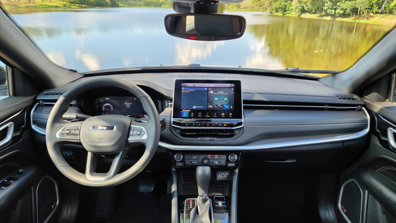 No uso cotidiano de volta à capital, a conectividade da central multimídia com Android Auto e Apple CarPlay sem fio se destacou pela praticidade. O carregador por indução, disponível na versão, eliminou a necessidade de cabos e manteve o celular acessível para rotas e comunicação. O Compass Série S também demonstrou boa integração entre os recursos de segurança ativa, como o alerta de ponto cego, assistente de manutenção de faixa e os sensores de aproximação. Esses sistemas auxiliaram de forma contínua em avenidas de tráfego intenso e em manobras mais precisas.
