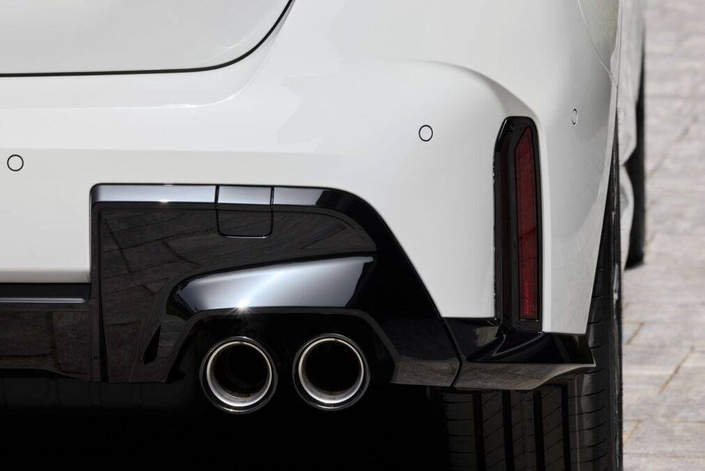 O design reforça o DNA esportivo da marca. O capô alongado, os balanços curtos e a grade com barras verticais e diagonais internas marcam a dianteira. Os faróis de LED afilados trazem elementos verticais para luzes diurnas e indicadores de direção. A iluminação de contorno da grade, chamada BMW Iconic Glow, é de série. Na traseira, lanternas que invadem a tampa do porta-malas, spoiler e saídas duplas de escapamento completam o visual.
