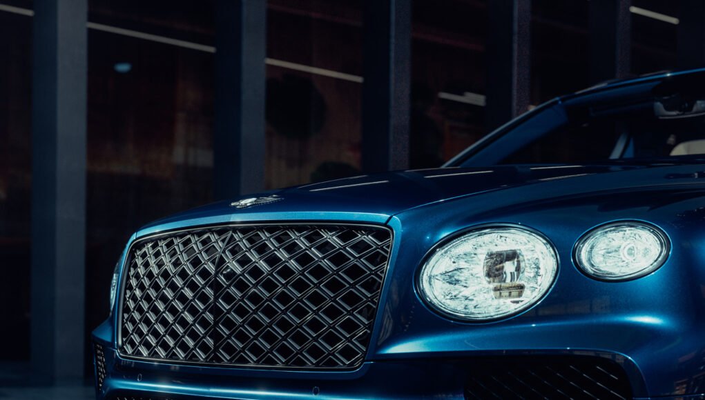 Outra configuração destacada é o Sequin Blue, que traz exterior esportivo com rodas em preto brilhante e pinças de freio pretas. O interior combina couro Linen e Beluga com acentos em azul claro, presentes no painel, console, volante e bordados das asas Bentley.