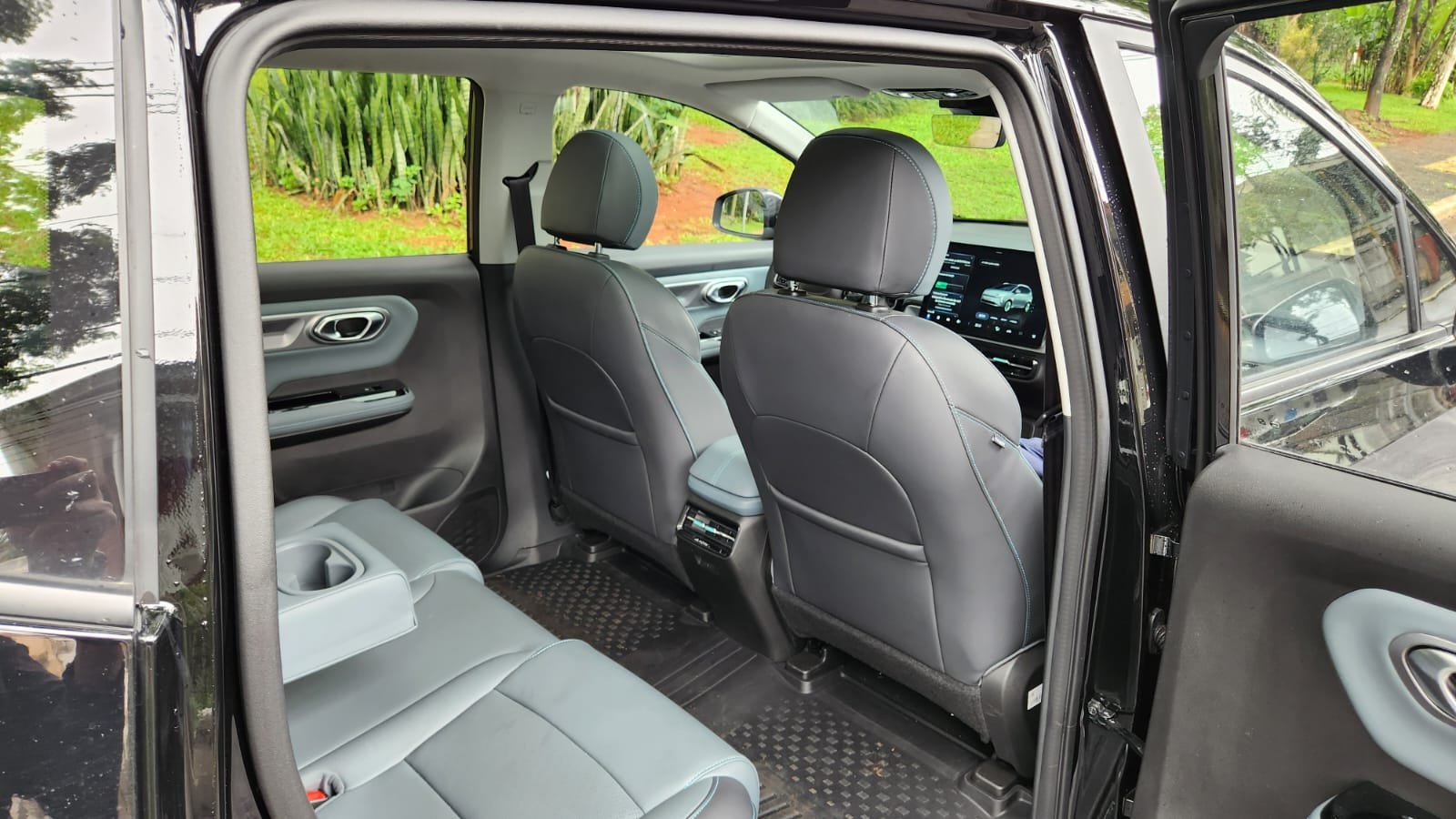 No interior, o modelo oferece soluções voltadas à funcionalidade. As portas traseiras com abertura próxima a 90 graus facilitam o acesso, enquanto o espaço interno permite acomodação confortável para passageiros no banco traseiro. A modularidade dos bancos amplia a capacidade de carga conforme a necessidade, característica relevante para o uso urbano e familiar.