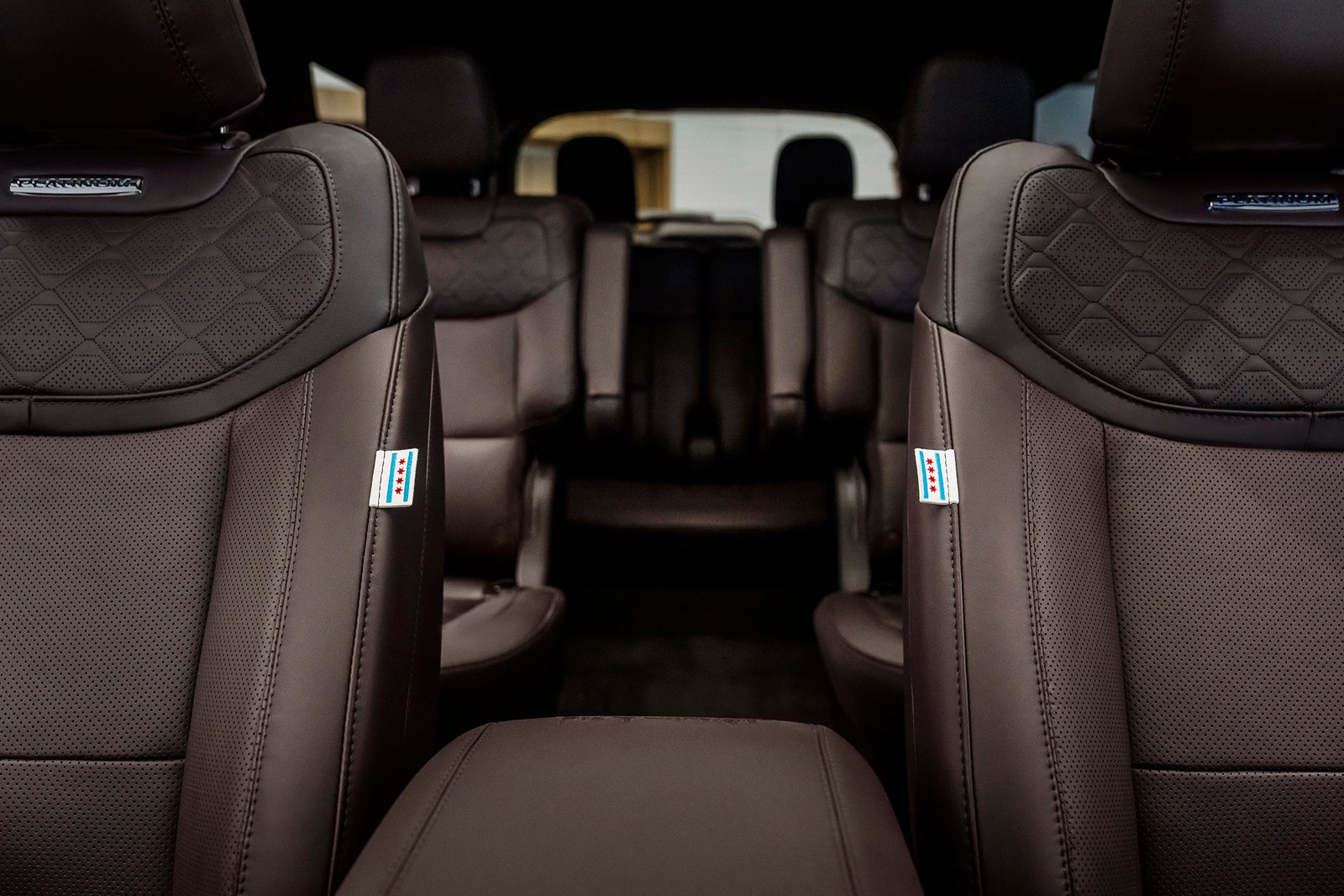 O interior traz elementos exclusivos, como etiquetas com a bandeira de Chicago nos bancos de couro e o skyline da cidade bordado no console central. O sistema de áudio foi adaptado para sintonizar estações de rádio europeias. As soleiras exibem os skylines de Chicago e da Basílica de São Pedro, representando a trajetória do Papa até o Vaticano.