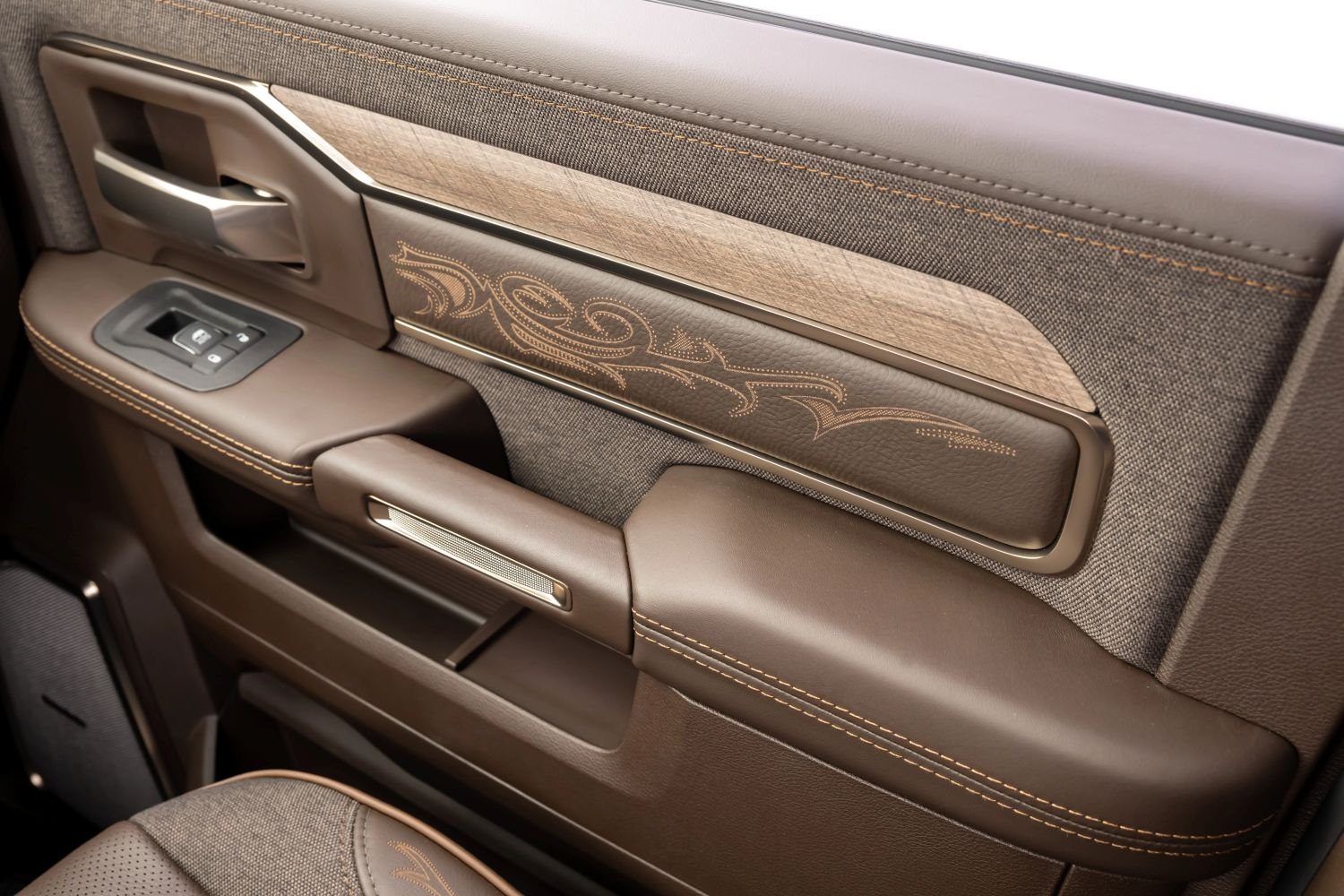 Internamente, a Ram 3500 Limited Longhorn representa o topo da gama da marca no Brasil. O modelo oferece bancos de couro com design exclusivo, acabamento em madeira legítima e detalhes artesanais distribuídos pela cabine. O retrovisor digital 3.0, capaz de projetar diferentes pontos de vista, amplia a visibilidade do condutor em situações de reboque de trailers ou implementos.