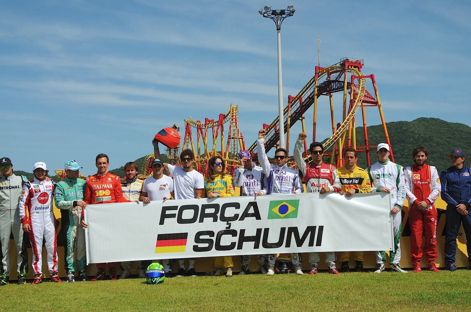 Felipe Massa, idealizador do evento, já havia mostrado seu capacete levando um adesivo na parte superior da viseira em homenagem a seu amigo e ex-companheiro de equipe. Na tarde deste sábado todos os pilotos e o ator Caio Castro, que disputará a Corrida dos Artistas e é um fã confesso do ex-piloto alemão, se juntaram e, na parte central do traçado do Kartódromo Beto Carrero World, em Penha (SC), onde acontece a prova, fizeram uma corrente pela recuperação do alemão.