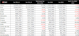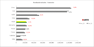 O Brasil ficou na 4ª posição com 3.575.947 unidades de carros e comerciais leves vendidos no ano, mas com queda de 1,6%, nas vendas se comparado ao ano anterior. A Alemanha segue em 5º lugar com retração de 4,1% quando comparado a 2012.